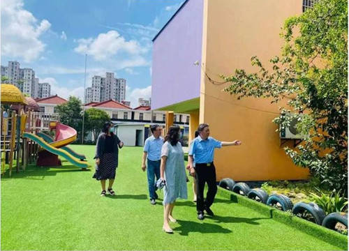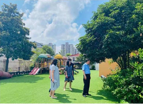 7月22日上午,扬州经济技术开发区教育集团领导陆鹏海在城乡局领导陈维祥、丁晶陪同下,一行来到长河新苑幼儿园实地考察调研。