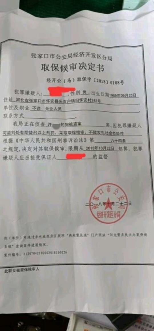 柳先生出具的取保候审决定书
