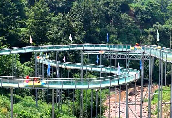 据悉,此次“三八”妇女节推出的玻璃滑道漂流(即:3D高空激情漂)约1100米,是西南地区直线距离最长的高空玻璃滑道,也是景区的一大亮点,顺着水流与山势蜿蜒曲折盘旋而下,540度的全景视野,饱览沿途的所有美景,堪称勇敢女神的高空激情漂。(记者 陈孝波 梦幻三漂景区 供图)