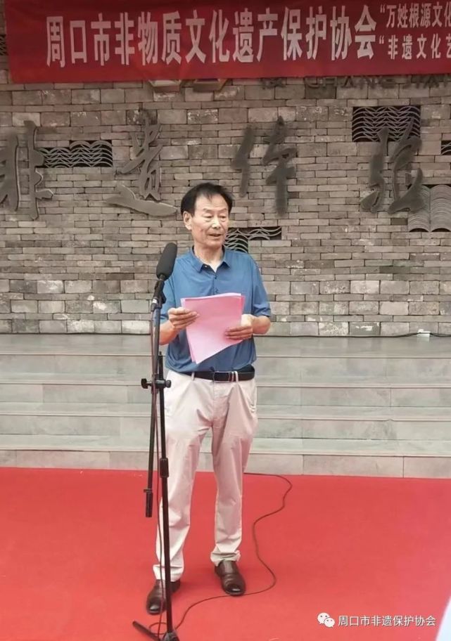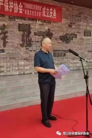 在仪式举办现场,周口非物质文化遗产保护协会副会长兼秘长书闫开斌首先宣读了周口非物质文化遗产保护协会关于成立万姓根源文化研究会、非遗文化艺术团的相关文件,周口非物质文化遗产保护协会会长吕自申先生做了重要讲话,他要求新成立的两个专委会要认真履行协会章程,遵规守法开展工作,为弘扬传承周口的非物质文化、宣传周口地域传统文化做出努力和奉献。万姓根源文化研究会主任王丽亚,非遗文化艺术团团长陈红也做了表态发言;深圳河南非遗保护协会联合会秘书长全亚东发来贺信,对此次活动表示祝贺;花鸟字非遗传承人、周口耳鼻喉医院院长王银邦代表与会嘉宾对两个专委会的成立致贺词,并表示以后会更多的支持周口非遗保护协会的工作。