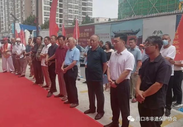 市文化广电和旅游局非遗科长王科杰;川汇区文化局非遗办公室主任王志刚;昌建集团周口五间楼项目总经理王龙;周口市非遗保护协会高级顾问王中民、徐程;淮阳区联络站站长、泥泥狗非遗传承人代表靳伟;沈丘联络站站长、顾家馍非遗传承人代表李敬伟;项城联络站副站长、灯谜非遗传承人代表闫涛;川汇区非遗协会副会长兼秘书长方立民出席仪式。