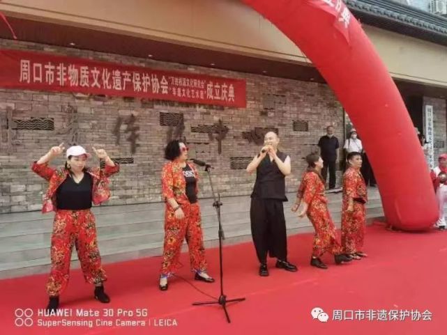 2022年7月30日上午,周口五间楼非遗体验中心门前彩旗飘扬,热闹非常,周口市非物质文化遗产保护协会·万姓根源文化研究会、周口市非物质文化遗产保护协会·非遗文化艺术团成立授牌仪式在此隆重举行。