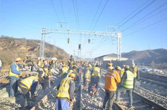 11月6日9时00分,经过中铁三局200余名施工人员连续4小时的奋战,闫家沟线路所最后一组重达80吨、长达60米的道岔插铺顺利完成,标志着浩吉、包西铁路实现互联互通,陕煤外运再添新通道。