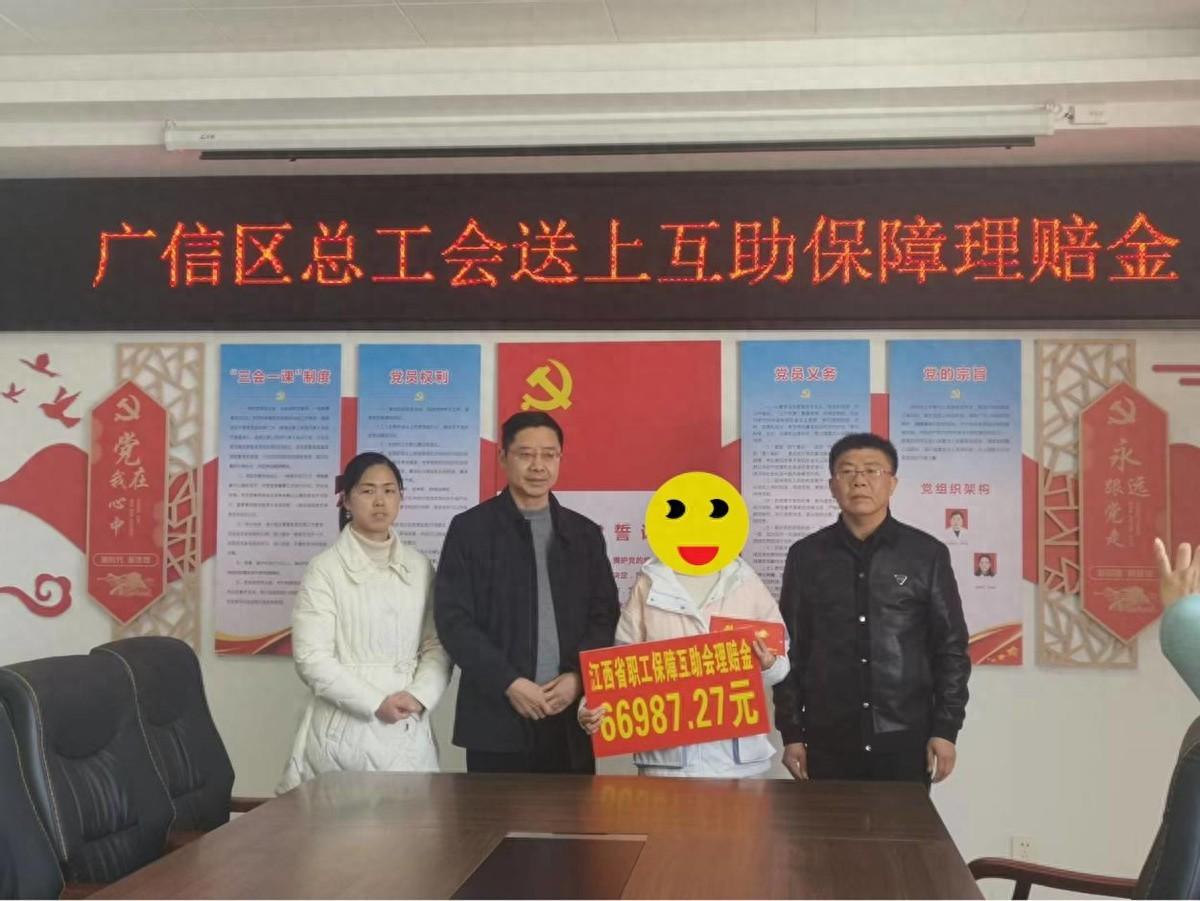 上饶市广信区总工会为职工送上互助保障理赔金