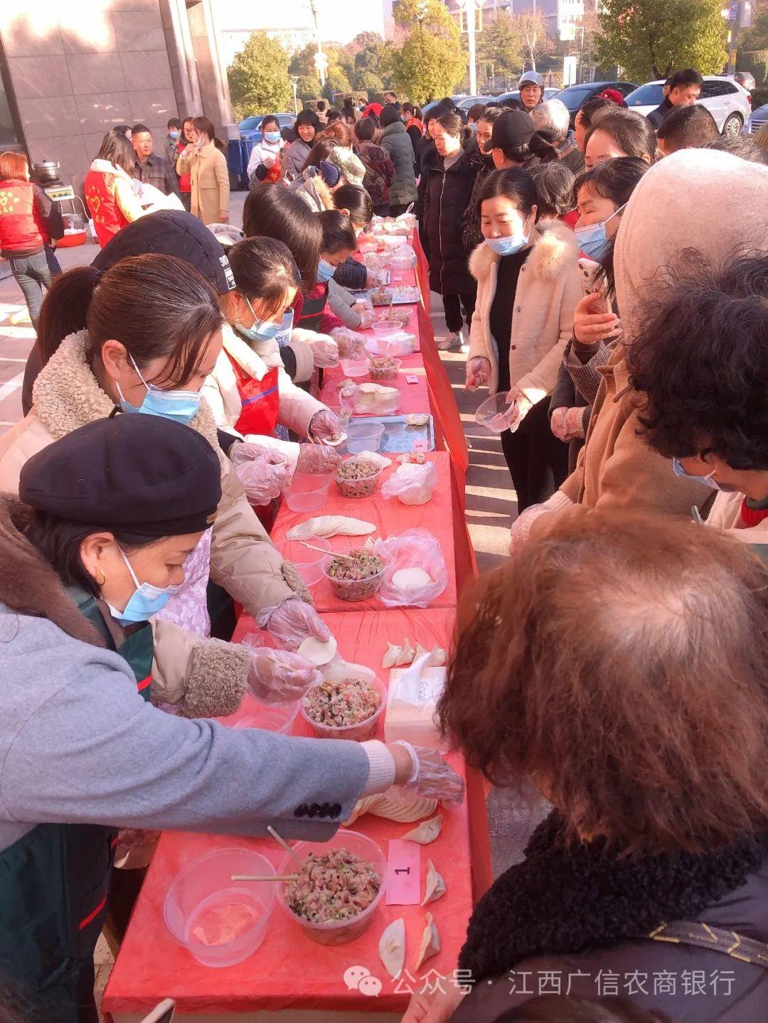 为深入践行省联社“一大工程三项行动”工作部署,为“2024年春天行动”打好工作基础,2024年1月12日上午,广信农商银行文家支行联合翰林华府物业在广信农商银行文家支行营业网点门口开展“饺子飘香迎新年 情系社区暖人心”主题党日活动,活动现场吸引到场人数180余人,互动氛围热烈,社区居民参与度高。
