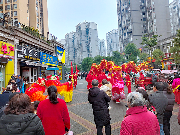 随着春节的临近,各地欢声笑语迎新年。重庆市涪陵区新城区商会、涪陵区餐饮协会新区分会以“狮龙同舞”民俗表演向新区人民拜年,成了涪陵新区市民近段时间精美而丰富的节日文化大餐。