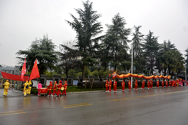上午8点过,艾家坝道路上锣鼓喧天,气势磅礴,舞龙舞狮队依次沿街穿行,在马鞍街道太乙门社区驻地顿时成了欢乐的海洋,参加演出的文艺队伍身着整齐统一的表演服装,精神抖擞、热情饱满,纷纷亮出了他们的各种拿手节目——威武的长龙在队员们的挥舞下活灵活现,长龙追逐着龙珠,尽情地飞跃、翻腾、游动。