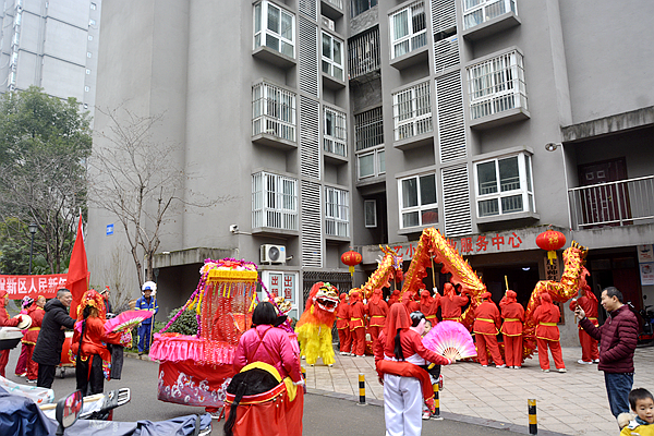 2月1日,农历腊月二十二,在红星国际小区、太乙门小区、艾家坝周边的商超、门店及单位锣鼓喧天、热闹非凡,来自高新区文化娱乐健康宣传队的文艺表演队伍,用丰富多彩的文艺表演给新区人民拜年,引来不少市民驻足围观。
