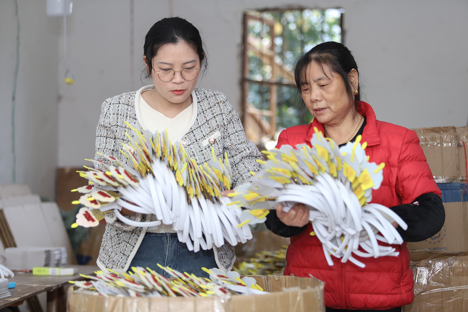 2月29日,余干县社赓镇方樊村的妇女们,在当地一家“微工厂”加工出口头饰产品。近年来,余干县结合本地优势资源,出台相关优惠政策,鼓励当地劳动密集型企业进驻社区和农村建立“微工厂”,将就业岗位送到群众家门口,帮助妇女实现就业增收。
