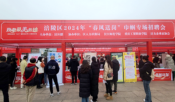 为解决企业招聘难,学生就业难问题,重庆市涪陵区政府在第114个“三八”妇女节前夕举办了2024年“春风送岗”巾帼招聘会活动,搭建女性就业平台,指导帮扶女性求职就业。民建涪陵区委了解情况后,立即动员民建女企业家积极参加专场招聘女性员工。