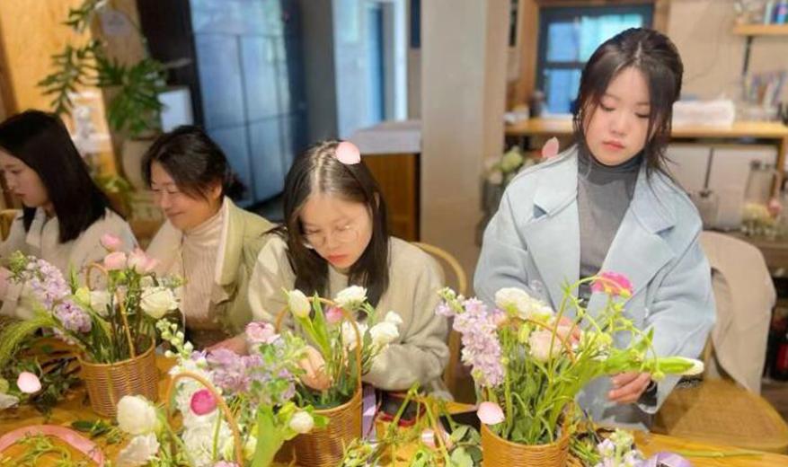在馥郁花香中体会高雅之美,平日里繁忙的女教职工们在插花中拾得乐趣,从作品中获得满足,美丽的花束更传递了美好和祝福。