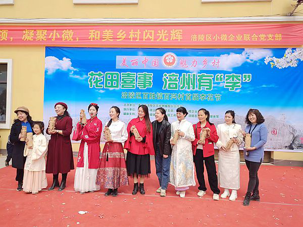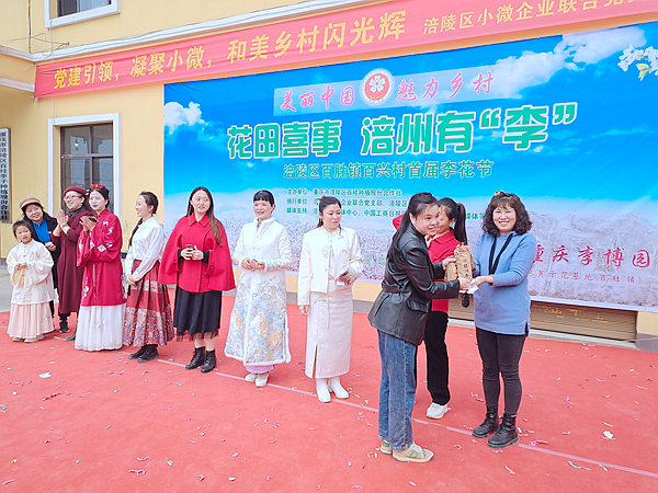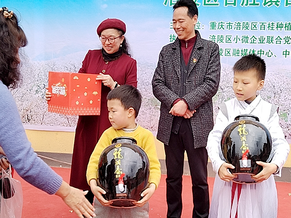3月16日,重庆涪陵龙洞香海怡酒类销售有限公司提供赞助的龙洞香·洞藏酒及精美酒坛助力“花田喜事 涪州有‘李’”为主题的重庆市涪陵区百胜镇百兴村“李博园”首届李花节开幕。