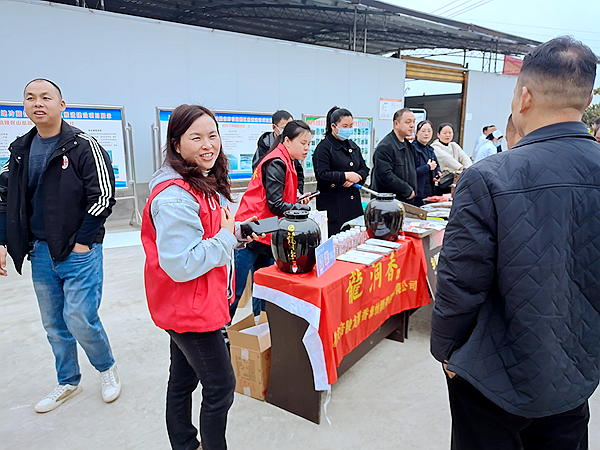 特别是在重庆涪陵龙洞香海怡酒类销售有限公司的摩围山洞藏酒展台前,吸引了众多消费者驻足询问、扫码领取品鉴酒。