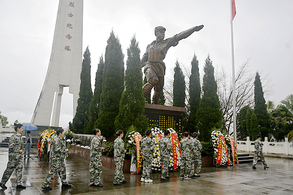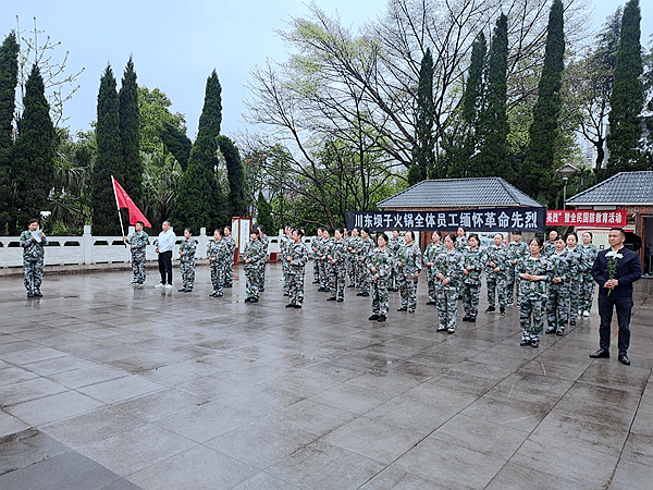 上午9点,祭扫活动在细雨中开始,全体员工整装肃容,在川东坝子总经理王星文的带领下,怀着崇敬的心情,在庄严的革命烈士纪念碑前,高唱国歌、肃立默哀、敬献鲜花,追思先烈英勇事迹,缅怀先烈崇高精神,传承革命红色基因,汲取奋进力量。