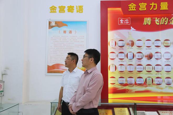 谭经理向一行领导详细讲解了公司发展历程、企业文化、产品构架、业务布局等情况,并带领一行领导实地参观了公司生产中心、产品展示中心,为一众领导介绍公司的代表产品(金宫鸡精、金宫酸菜鱼调料、金宫火锅底料、金宫香肠腊肉调料等)。