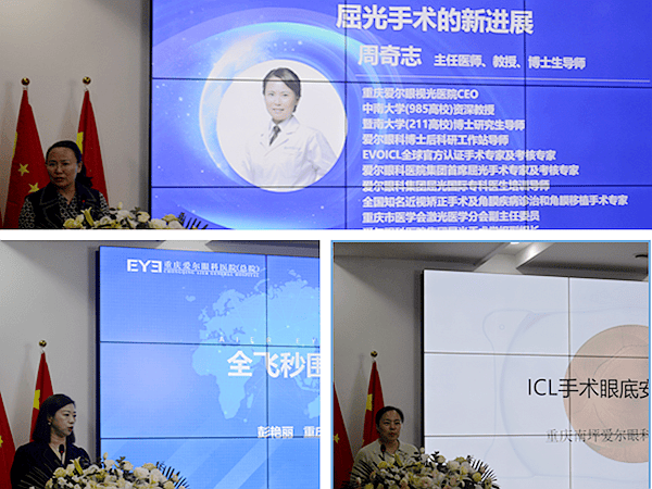 重庆爱尔眼科医院(总院)副院长彭艳丽为大家详细讲解了《全飞秒的围手术期管理》;中南大学资深教授、爱尔眼科医院集团屈光手术学组副组长周奇志为大家做了《屈光手术进展》的科普分享;重庆南坪爱尔眼科医院常务副院长张奕霞为大家带来了《ICL/TICL手术眼底安全性管理》的讲解。