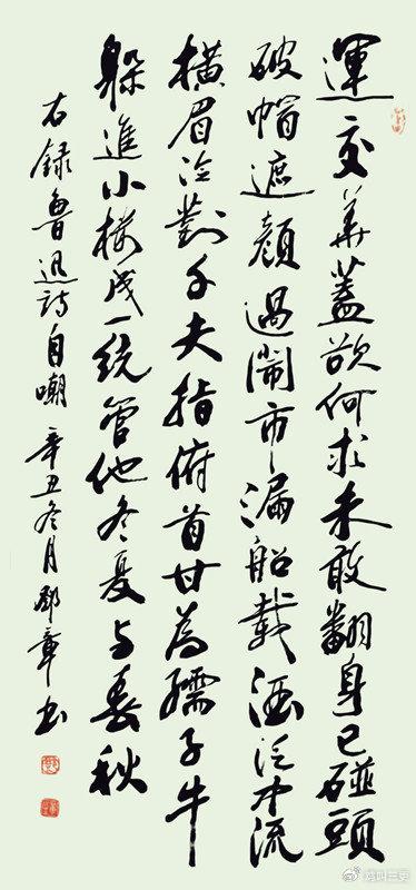 这些年,邓章生先生不仅在书法上颇有研究,还涉足了国画和诗词。这部作品集中,可以全方位窥见先生的艺术“意趣”。其实艺术是相通的,书画家真地还要具备诗人般的浪漫情感,情感的恣肆因浪漫而颇具神态、意趣。不管是出于书法世家的颜真卿,还是守乎法度最严、出乎法度至纵的张旭,在他们的书法艺术生涯中,都受过传统技巧的严格训练,因而他们都具有深厚的书法功力,艺术巨匠们正是凭借于此,才能自由驰骋于法度中,悠游超脱于规矩法度之外。我认为作品中的“意趣”是基于传统功底上的性情抒发,是超越了技巧和形式的束缚的。它不是简单的笔画勾勒,也不是单纯的墨色渲染。它是生命的精神,是灵动的韵律,是深邃的思考。当我们欣赏一幅作品时,我们不仅在欣赏其技巧和形式的美,更在感受其背后的精神世界和生命状态。那流动的线条,挥洒的笔墨,都在向我们诉说着书家的情感与思想,展示着所要表达的生命力和创造力。其实,书法如此,国画和诗词亦是如此。风格、性情、意趣是艺术的生命力。前几天,我跟邓章生先生交流时,先生对我说:“我的作品仍然是传统型的,跟现代创新派的作品有较大差异,但湖北省和武汉市的几位老书家劝我不要勉强改变自己的风格,正如启功先生所言:‘写得好看就行。’所以,您看了也许并不喜欢,百花齐放嘛,不同流派、不同风格的作品才能适应不同人群的爱好。我虽然也是湖北省诗词学会会员,但我的诗词作品,大多为散文诗(叙事诗),律诗很少。……画作很少,只是一点并不成熟的花鸟画,而且近几年眼神不好,已经没有新画了……”显然,先生有些低调和自谦。诚然,真如先生所言,允许艺术和意趣的多方位存在。萝卜白菜,各有所爱,对吧?