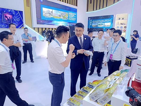 展会期间,重庆市商务委党组书记、主任章勇武一行带队参观了公司新产品展位,公司总经理任浩淼简要向其汇报了当前的生产经营情况,以及公司未来围绕“一老一小”开发更多功能性主食产品,助力实施“健康中国”战略行动的规划,受到了章主任的高度肯定与鼓励。