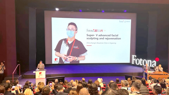 作为欧洲LAHA激光学院国际讲师,国内医美“声光电”领域的先行者与领航者,深圳香蜜丽格医疗美容黎京雄院长代表中国医生发表了英文演讲:《Super-V advanced facial sculpting and rejuvenation》,全场景展示Fotona4DPro2.0与Fotona超V光在面部精细化抗衰与非手术轮廓打造方面的前沿成果。
