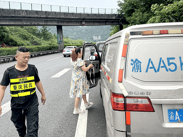 5月28日,在从重庆市涪陵区马武镇回涪陵城的途中,一位女驾驶员驾驶的长安车遭遇前轮爆胎的困境。幸运的是,涪陵区应急管理局华岩救援队队员彭荣贵和重庆彭婆婆食品科技有限公司的舒鹏恰巧路过。
