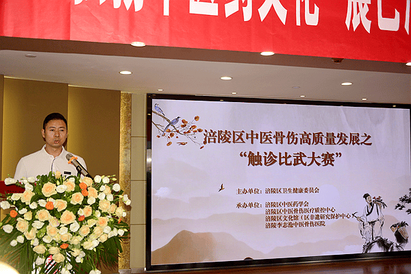 涪陵区卫生健康委党委委员、副主任洪亮在讲话中指出,此次活动通过竞技形式,传承和弘扬中医药文化,展示巴渝地区中医骨伤领域的专业风采,提升涪陵区中医骨伤医务人员的触诊技术水平,有力推动涪陵区中医药事业的高质量发展。并希望各位参赛选手充分发挥专业技能和才华,赛出风格、水平与友谊。