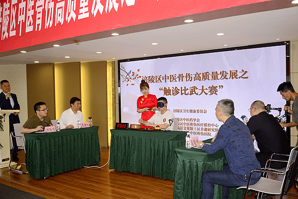 随后,精彩激烈的中医“触”诊摸骨大赛正式拉开帷幕,大赛分为蒙眼摸骨和沙袋摸骨两个环节。
