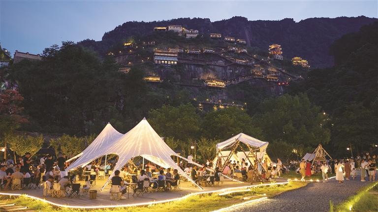 暮色渐浓,酒吧街热闹非凡。在这里,你可以看到各种风格的酒吧,无论是民谣酒吧、摇滚酒吧还是安静舒适的清吧,都能让你度过一个难忘的夜晚。听着动感的音乐,小酌一杯,在微醺里,释放白天的压力。或是约上三五好友,着一身汉服,仿若置身于古人的世界,寻找趣味和美好。还可以参加篝火晚会。大家围着篝火,手拉着手跳舞、唱歌,感受着团结和欢乐。