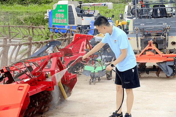 科技赋能乡村振兴,实践团成员发挥专业优势。在凤山果迷种植园,运用专业知识拍摄无人机航拍视频并制作宣传视频,提升果园人气;在八一村农机合作社,与技术人员一同对农用机械进行检查和清洗,为秋收做好准备。