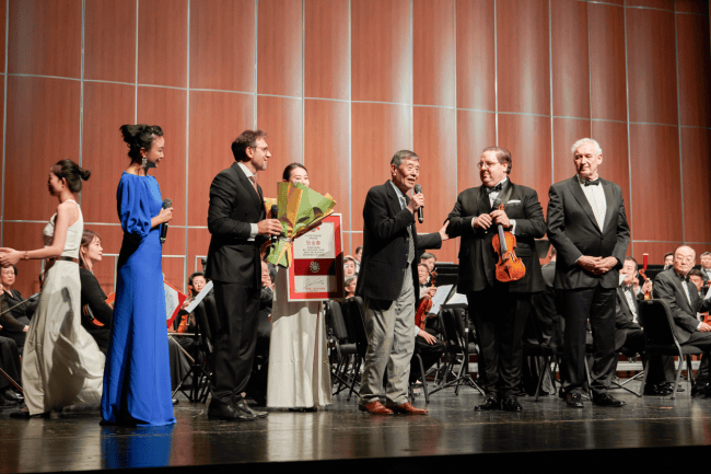 紧接着,是备受瞩目的赠琴仪式。每一把琴都像是传递爱的使者,承载着捐赠者波兰艺术团团长沃特克·杜特科维奇先生的深情厚谊,为这场音乐会增添了更为浓厚的公益色彩。