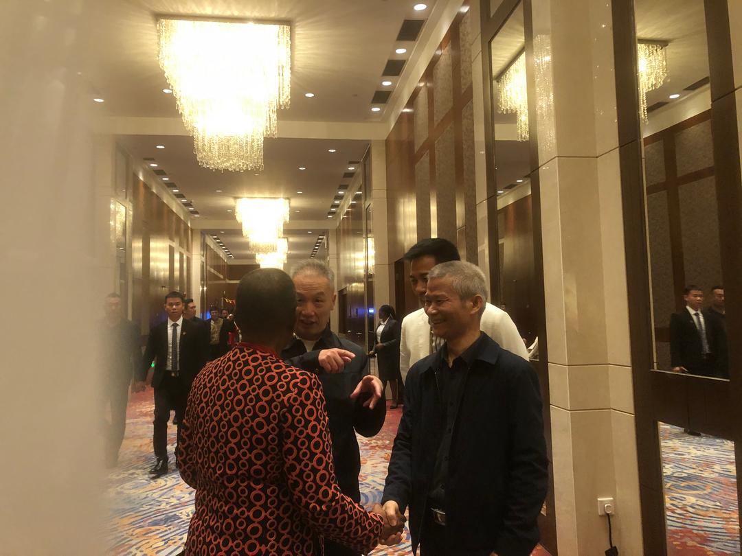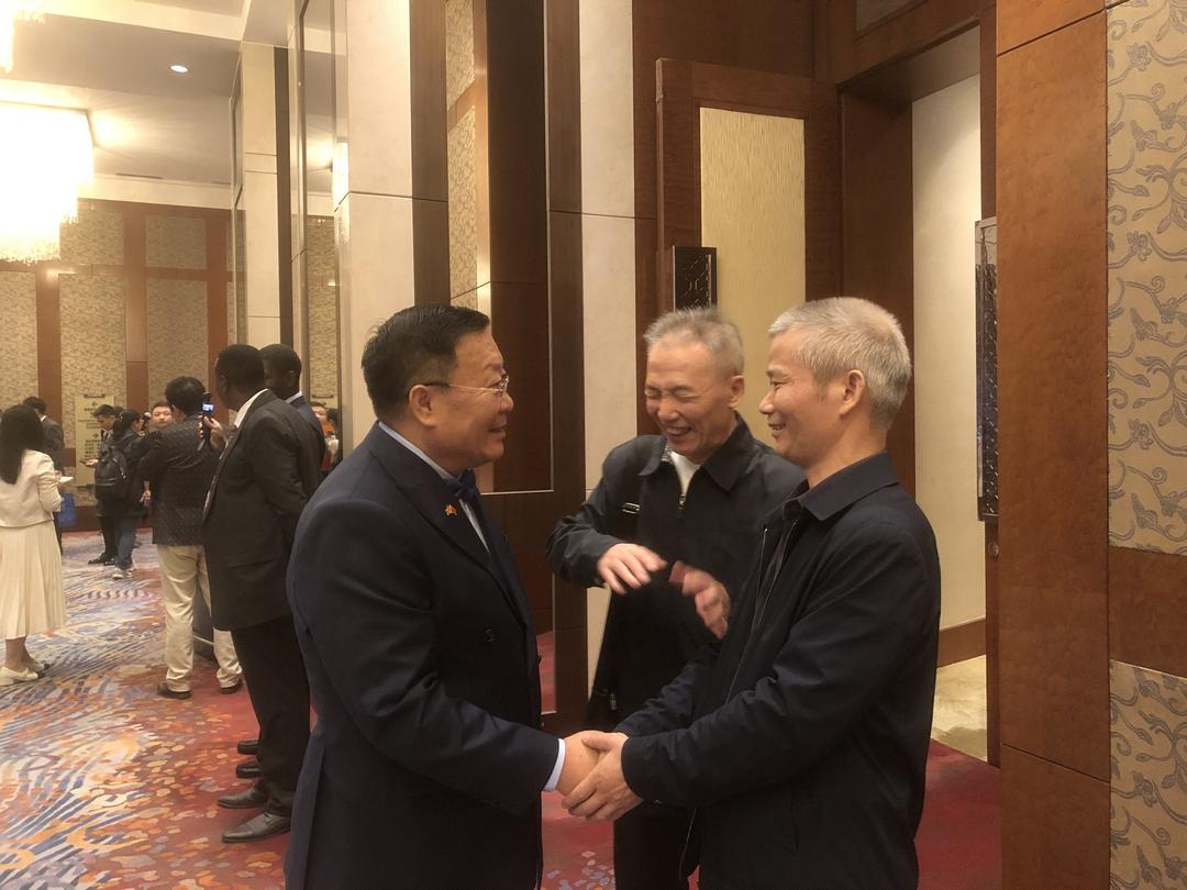 与乌干达驻华大使馆商务公使娄晓明先生及大使馆原工作人员杨先生进行亲切交流。香港共工社发