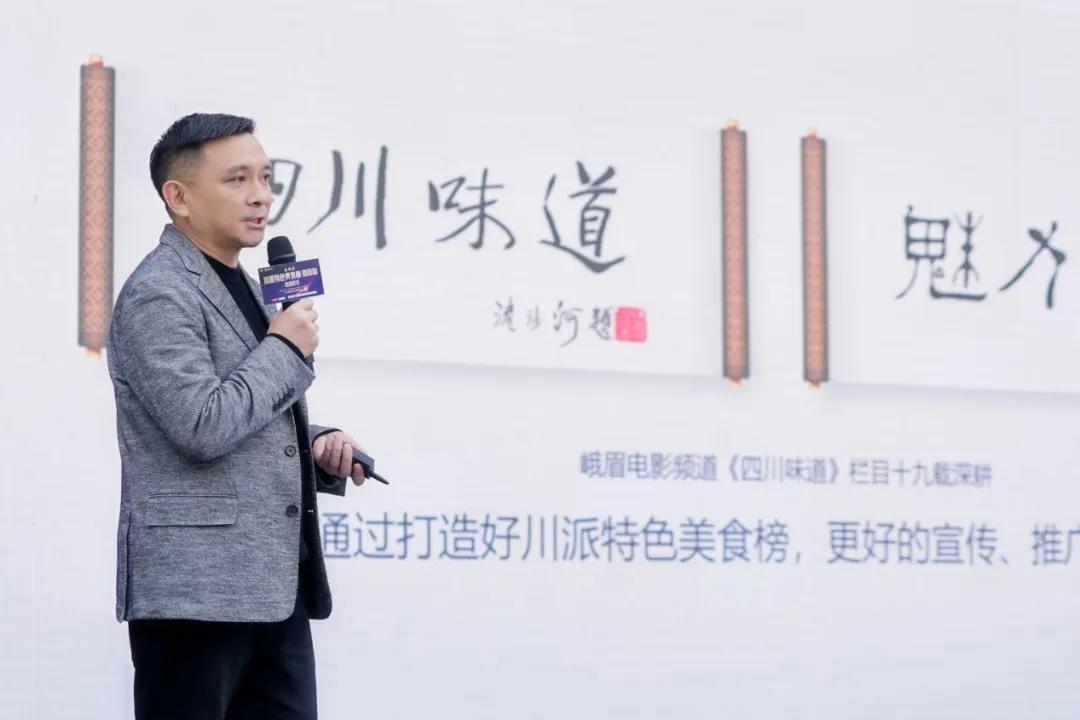 川派特色美食榜单总策划/峨眉电影频道《四川味道》栏目制片人钟伟代表活动主办方详细介绍了活动开展的流程与评比方式。