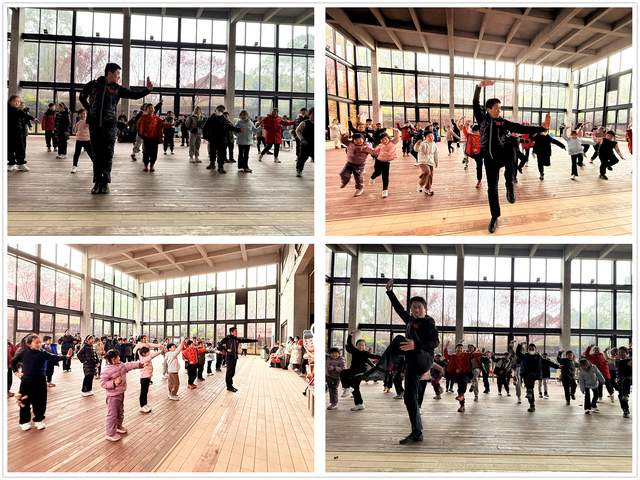 而在最后的高潮环节,所有孩子应声起立,家长和孩子们一起跟邵长华老师学习了《哪吒2》里的经典武术动作“从来生死都看淡,专和老天对着干,我命由我不由天,小爷成魔不成仙”。大家整齐划一地做着武术动作,大声喊出“中华有为、拳心报国”的口号,声音响彻场馆。在这振奋人心的氛围中,大家一起拍下合影,为这个愉快的周末下午画上了圆满的句号。