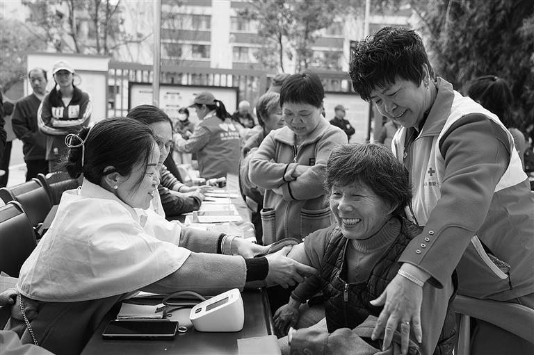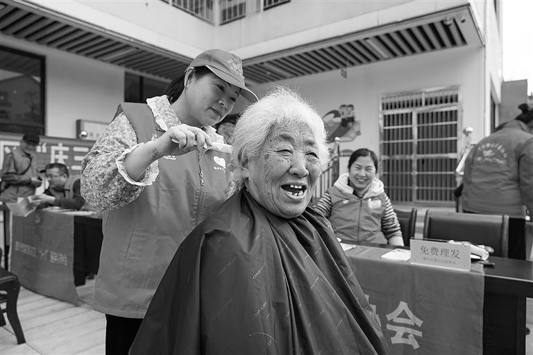 近日,德兴市新营街道城南社区开展“学雷锋”志愿服务活动,志愿者为居民检查身体、理发,用实际行动献爱心。