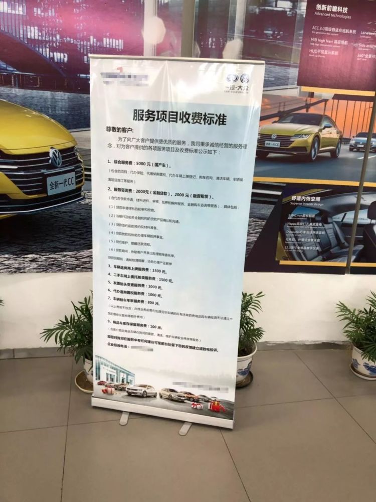“我们现在收费都是明码标价,提前告知消费者的。”在一家一汽大众的经销商店内,一位销售人员面对记者询问“金融服务费”问题时,回答很“直白”。