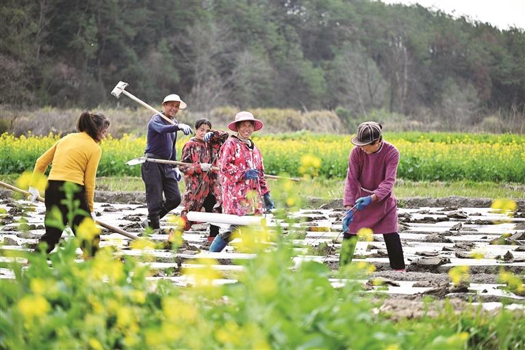 春暖花开忙农事。日前,在铅山县汪二镇港沿村,村民们正在田间地头忙着种植红芽芋,一幅美轮美奂的春景图跃然眼前。