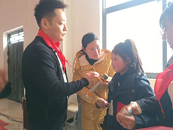 娄云昭总经理在发言中感动地说,今天我们受慧宇教育董事长王琨老师委托来到这里,只是奉献了一点爱心,尽了一个企业的社会责任,却受到如此欢迎令人非常感动;看到如此艰苦的办学条件非常震惊,你们面向全社会接收贫苦、残疾、智障、留守儿童和孤儿入学令人钦佩。我们呼吁,有更多的爱心企业和人士关注这所学校,都来领养或者支持一个孩子,奉献一点点爱,这个社会将更加和谐。