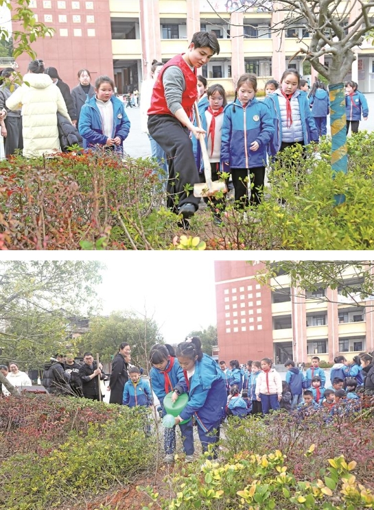 近日,横峰农商银行志愿服务队与该县第一小学师生共植树木。活动现场,志愿者们率先示范,挥锹挖坑、扶苗培土,小学生们化身“环保小卫士”,提桶浇水,用稚嫩双手呵护绿色希望。