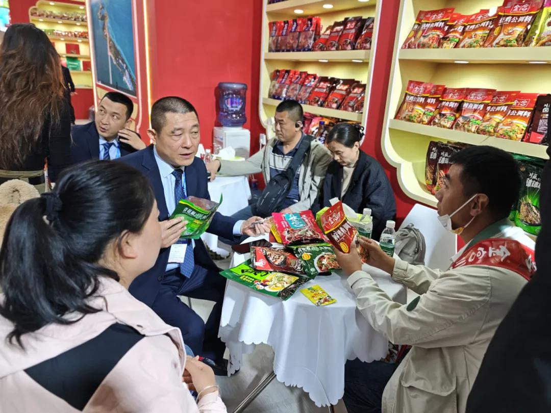 7号馆金宫展区试吃台前里外三圈,隔壁展商组团来蹭饭,刚切盘的香肠腊肉30秒被"光盘",现煮的麻辣火锅让采购商竖起大拇指连连点赞。有趣的是,隔壁展位工作人员端着饭盒来"蹭汤底",笑称:"你们这香味是降维打击!"补货阿姨忙得脚不沾地,"切了一上午的香肠,根本供接不上!"