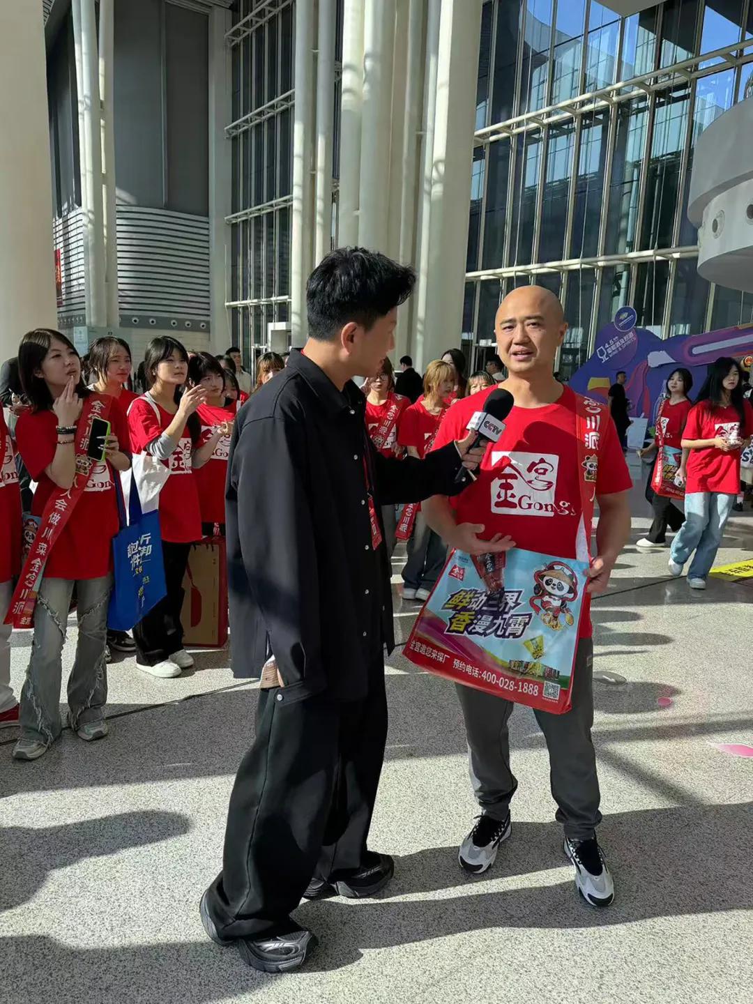 ↑25日糖酒会现场,金宫派单天团接受媒体采访。