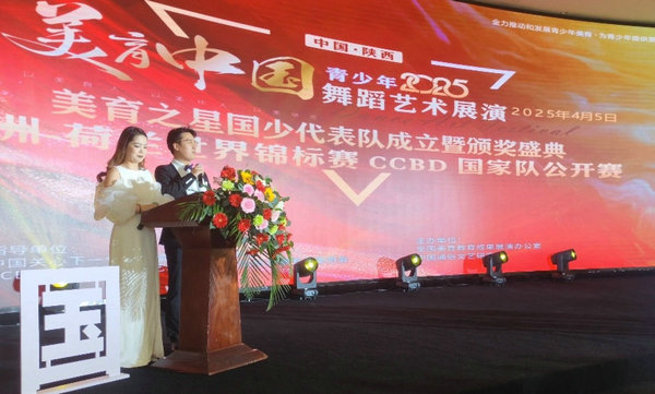 2025年4月4日至5日,由美育舞蹈联盟、中国关心下一代工作委员会教育中心陕西美育支教管理中心联合主办的“2025美育中国青少年舞蹈艺术展演——美育之星国少代表队成立暨颁奖盛典”及欧洲-荷兰世界锦标赛CCBD国家队公开赛(陕西站)在咸阳维景大酒店盛大举行。本次活动吸引了陕西省内外30家艺术机构、300余名选手参与,年龄跨度从4岁至70岁,充分展现了全民美育的蓬勃活力。 常远、杨雅静主持活动。