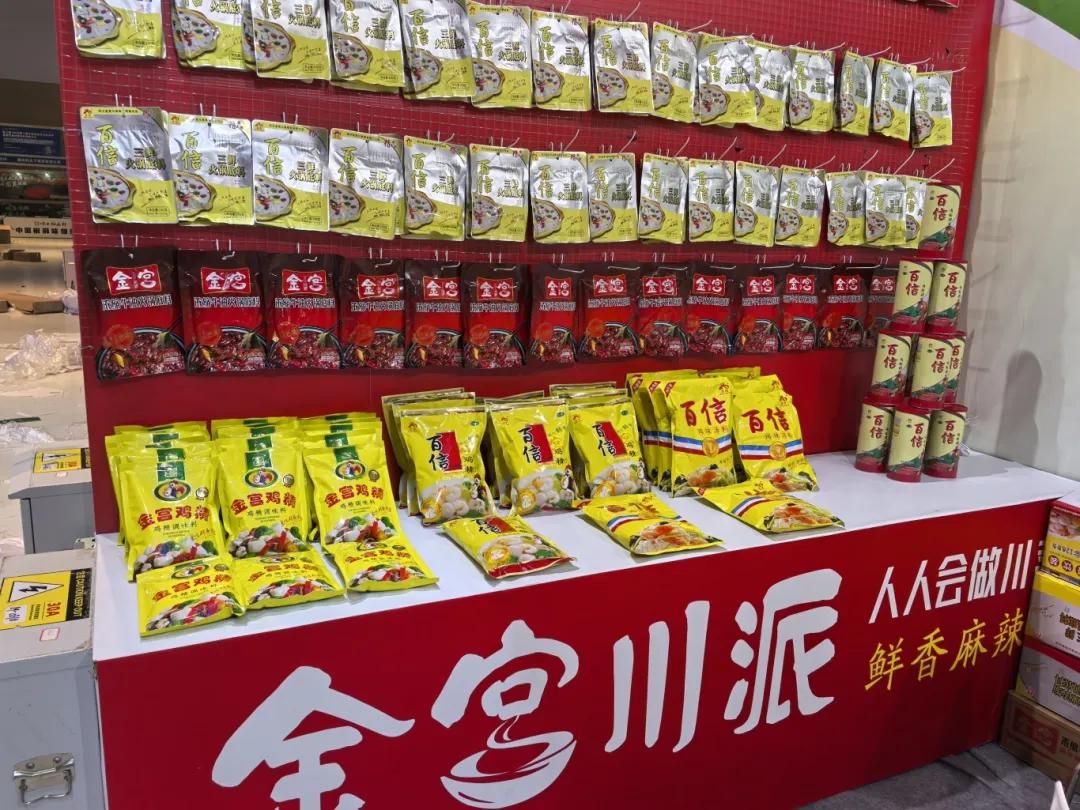 火锅底料系列 :百信三鲜火锅底料浓郁鲜香,汤醇味美;金宫浓缩牛油火锅底料,麻辣适口、色红油亮,香浓提味,现场吸引了众多采购商驻足咨询和品尝。