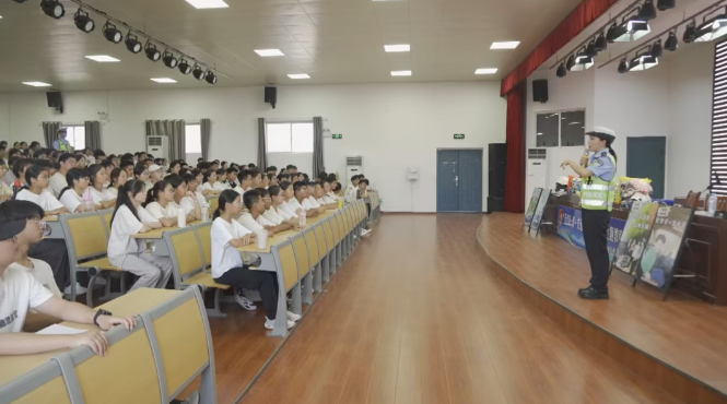 新学期即将开学,为筑牢秋季开学期间道路交通安全防线,切实提升广大学生的交通安全意识与自我防护能力,有效预防和减少涉学道路交通事故,鄱阳县公安交管民警紧扣开学季关键节点,走进鄱阳二中开展交通安全主题宣讲活动,为学校师生送上了一堂生动实用的“开学第一课”。