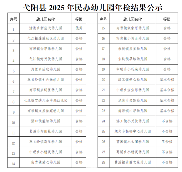 关于弋阳县2025年民办幼儿园年检结果的公示