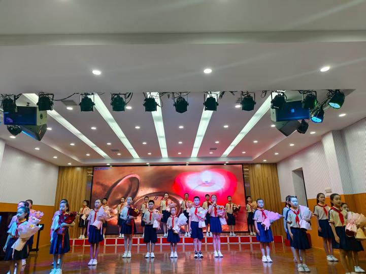 在表彰环节,学校对“四有”好教师、“园丁教师”等先进典型进行了表彰。优秀教师们以扎实的专业素养、高尚的师德师风,在教育教学工作中取得了突出成绩,成为全体教师学习的榜样。他们的事迹通过大屏幕一一呈现,赢得了现场观众阵阵热烈的掌声。活动接近尾声时,全场教师共同挥舞手中的手机,闪光灯如点点繁星,照亮了整个会场。大家齐声合唱《同一首歌》,熟悉的旋律回荡在校园上空,将活动气氛推向了最高潮。这一幕不仅展现了余干二小教师队伍的团结一心,更彰显了广大教育工作者坚守立德树人初心、勇担为党育人、为国育才使命的坚定信念。