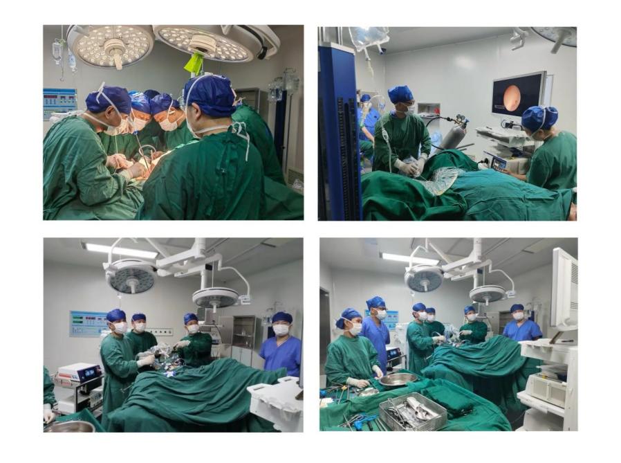 面对这一“棘手”病例,医院外科学科带头人迅速集结泌尿外科、普外科、肿瘤科、重症医学科、手术麻醉科等多学科,组建MDT(多学科协作诊疗)团队,联合杨吉勇博士,对患者进行全方面会诊、评估,制定个体化最优手术方案。并对患者实施:经尿道输尿管镜下左输尿管结石钬激光碎石取石术+左输尿管支架置入术+腹腔镜辅助乙状结肠癌根治术+膀胱部分切除术(成功保留左侧输尿管开口)+横结肠造口还纳术。手术台上各学科专家各施所长、密切配合,历时6小时,成功完成此项高难度手术。目前患者已从ICU转入普通病房进行后续治疗。