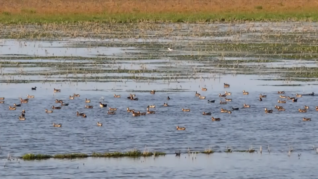 “今天在鄱阳县莲湖乡云湖巡湖时发现600多只越冬候鸟——绿翅鸭,同比往年,数量有所增加,根据我们分析,它们是来鄱阳湖越冬候鸟的先头部队。”在位于鄱阳湖畔的鄱阳县莲湖乡云湖水域,600多只绿翅鸭和白眉鸭在浅滩休憩,或潜入水中觅食,鸭鸣声不绝于耳。这一发现由湖区候鸟监测巡护人员在日常巡护监测中记录确认,标志着鄱阳湖越冬候鸟“集结季”正式拉开序幕。