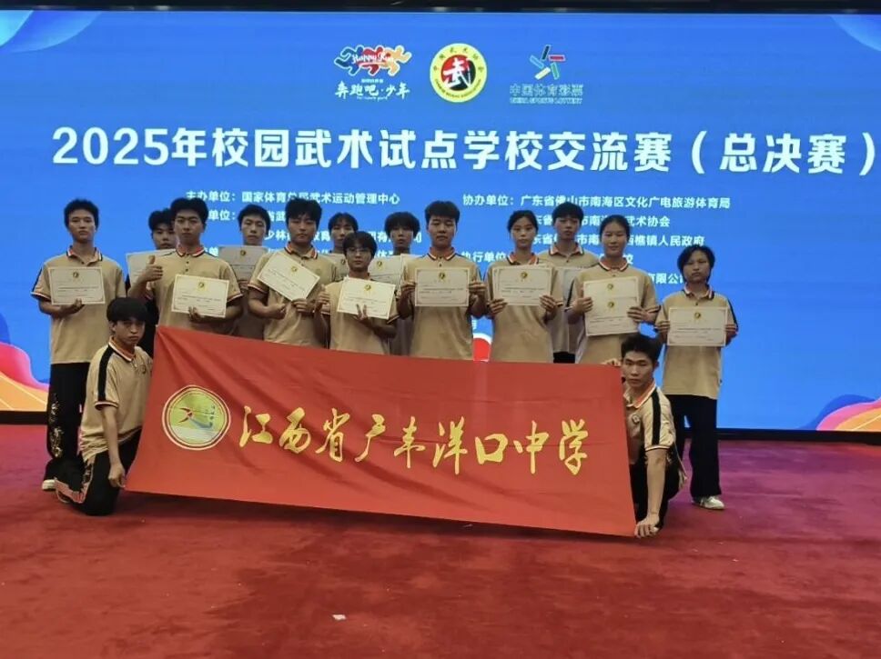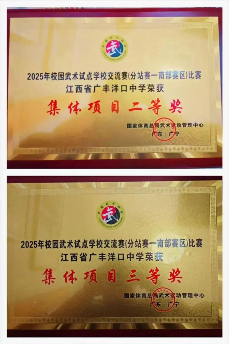 9月20日至25日,全国校园武术试点学校交流赛南部赛区分站赛中,广丰洋口中学武术队已初露锋芒,成功斩获集体项目二等奖与三等奖各一项,以优异成绩顺利晋级全国总决赛,为冲击更高荣誉奠定坚实基础。