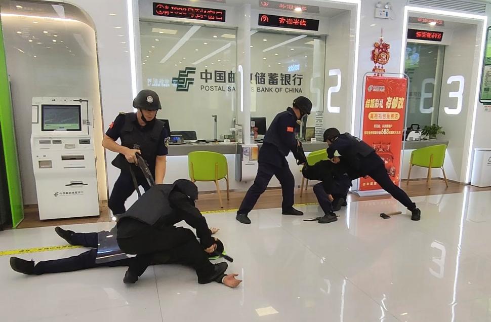 据悉,本次演练由弋阳县国控保安服务有限公司与弋阳县邮政分公司联合组织,全程高度模拟真实抢劫情景,全面检验银行网点在突发暴力事件中的报警响应、人员协同与器械使用等环节的实战能力。