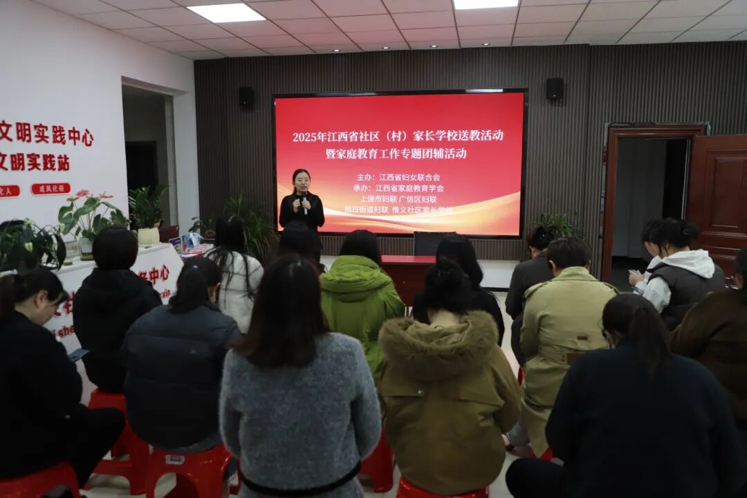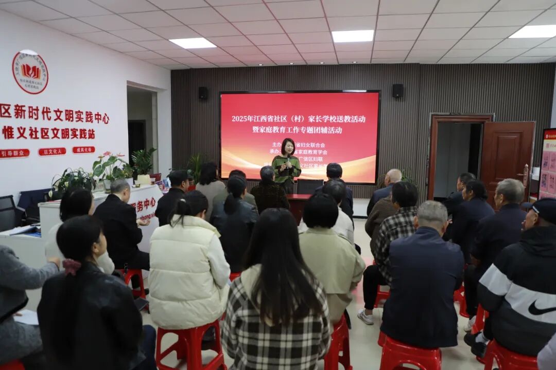 11月13日下午,旭日街道惟义社区家长学校家庭教育讲座暨家庭教育赋能团辅活动成功举办。此次活动由江西省妇女联合会主办、江西省家庭教育学会承办,是“省级规范化社区家长学校”送课工作的生动实践,吸引了众多社区居民热情参与。