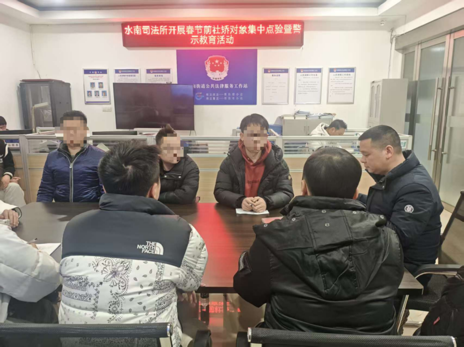 新春佳节将至,为切实维护春节期间辖区安全稳定,强化社区矫正对象法治意识、纪律意识和在矫意识,有效预防脱管、漏管及重新违法犯罪,2月11日,上饶市信州区水南司法所组织辖区全体社区矫正对象开展春节前集中点验暨警示教育活动,为平安过节筑牢法治防线。